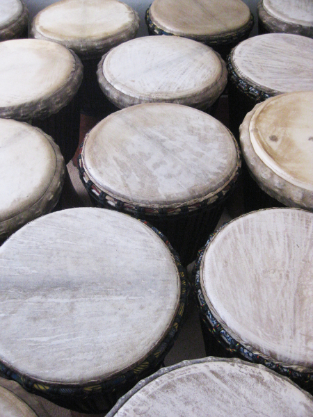 A sea of beautiful looking and sweet sounding djembes. Pick one! Made to Sayon’s specifications in Guinea from the traditional heartwood.